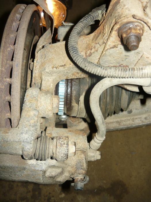 Když už jsem to měl rozebrané, tak jsem měnil pravý silentblok na stabilizátoru, protože to při přejezdu na nerovnostech trochu klepalo a výměna kostí nepomohla. Popravdě řečeno, už bych to měnit nechtěl, v servisním manuálu se píše, že se musí vyndat celá nápravnice(už vím proč