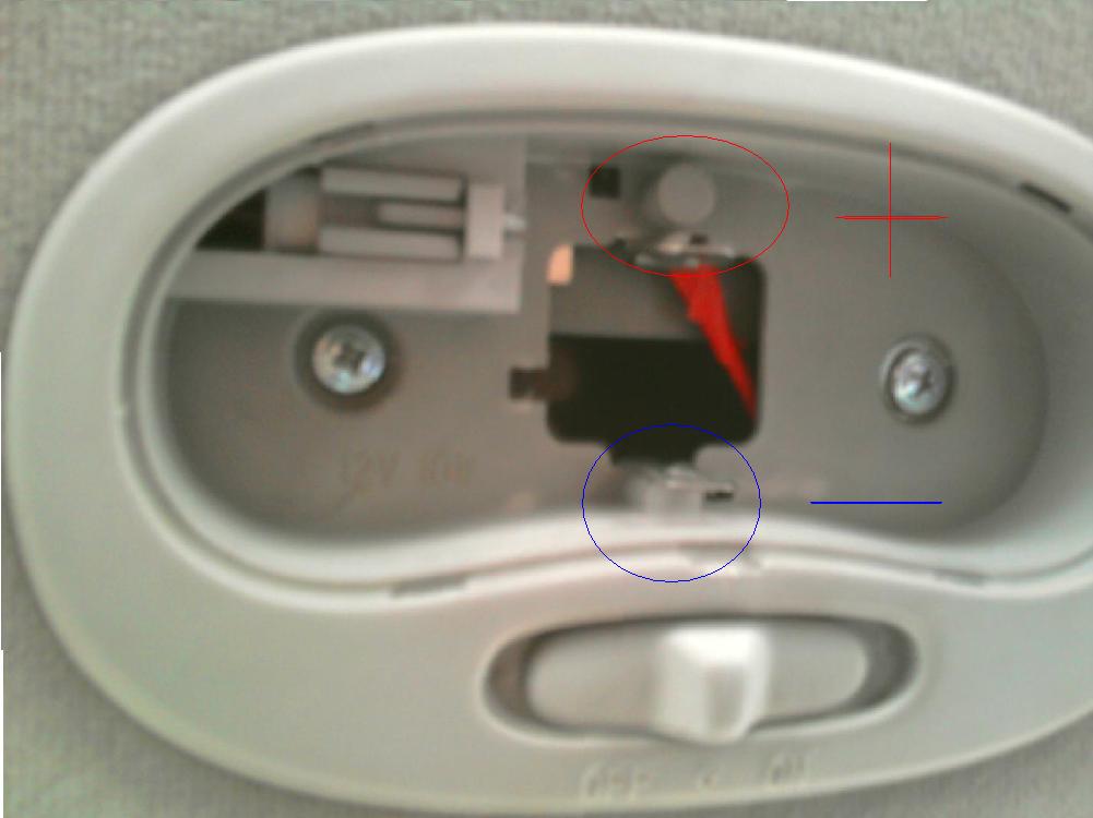 a tu je spomínane zapojenie osvetlenia nôh vodiča a spolujazdca........ vodiče som napojil na skrutky , ktoré držia tie kovové pliešky ktoré držia sulfidku :)..EDIT: to červené je vodič :)