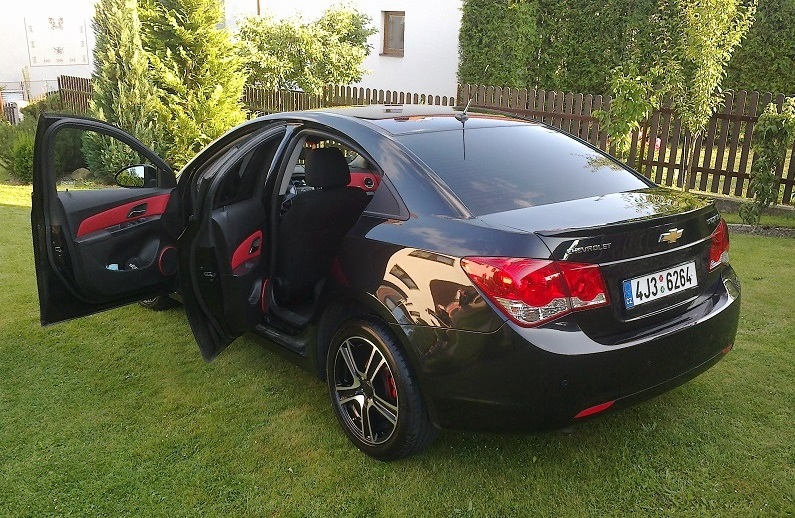 Chevy V.I.P. Cruze 1.6 LS Plus Edice 100, 91kw, černá Carbon Flash, přímé sání SIMOTA Racing Sports, Červený interier