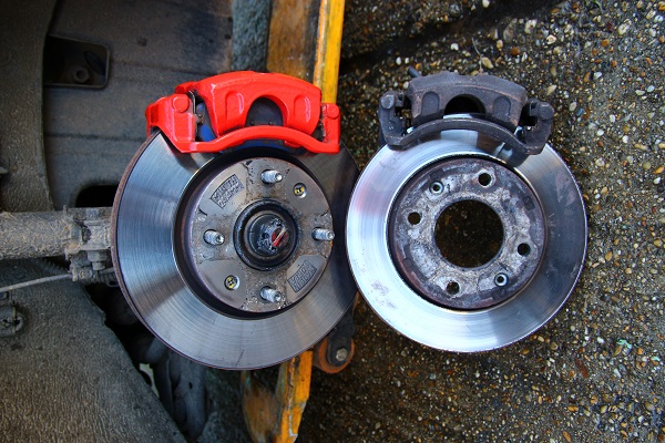 Zkus mu dát i větší brzdy, do 15 ráfků se dají šoupnou dopředu 280 kotouče, dozadu též, to je potom jiné brzděníčko. Já dal větší brzdy do druhého auta co máme doma a super. Malá inspirace na foto.