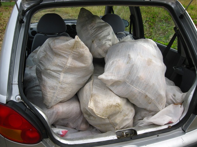 Tak sme s Matizom trošku pomáhali voziť repu. Šesť vriec a z Matiza je "lowrider"
