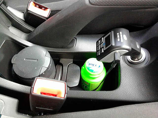 Nevýhodou je, že je třeba zařízení spárovat s rádiem pomocí klasického kmitočtu. takže naladit na nějakou předvolbu na rádiu. Obešel jsem to díky vestavěnému konektoru aux v loketní opěrce. Propojil jsem výstup na zařízení kabelem jack / jack, který jsem si upravil na potřebnou délku se vstupem v loketní opěrce a hle. při stlačení aux na rádiu , krásný čistý zvuk z repráků.Funguje náramně.