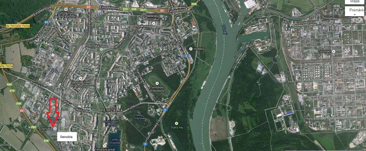 na parkovisku pred Danubia- Petržalka na obrázku časť parkoviska vyznačené červeným štvorčekom.