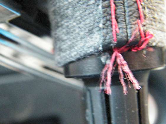 Nejdříve jsem přešil lemy na kůži do červena, aby mi to pasovalo k potahu volantu: