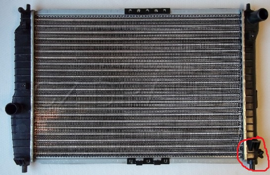 Na chladiči bud vpravo,nebo vlevo dole je výpustní kohout. Poznáš to,je to na chladiči ve spodní části. Mělo by to být to co je zakroužkované na fotce.